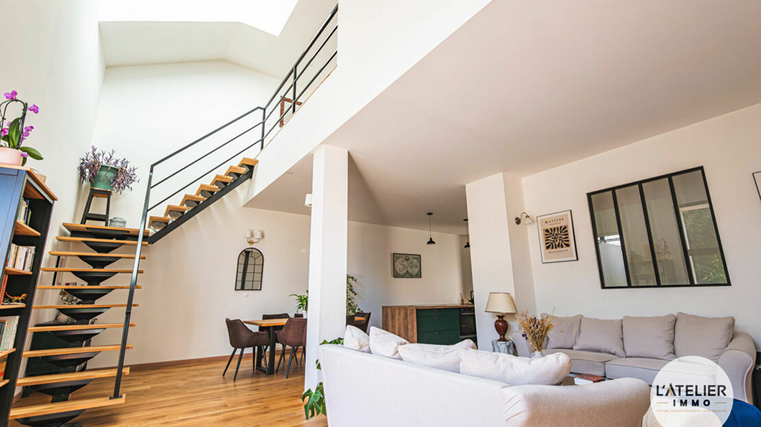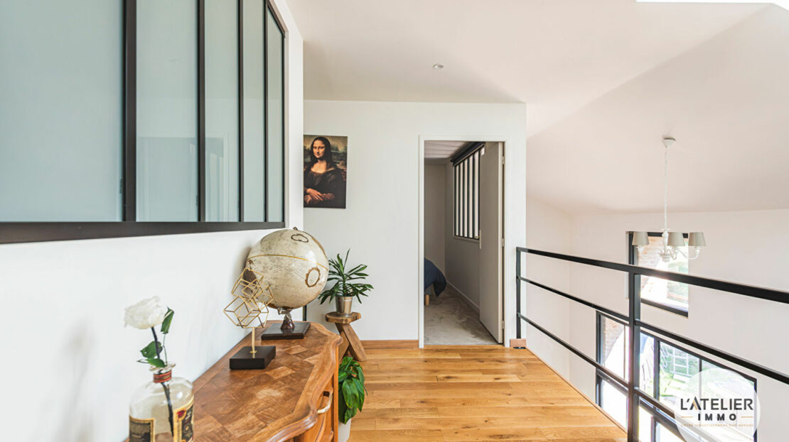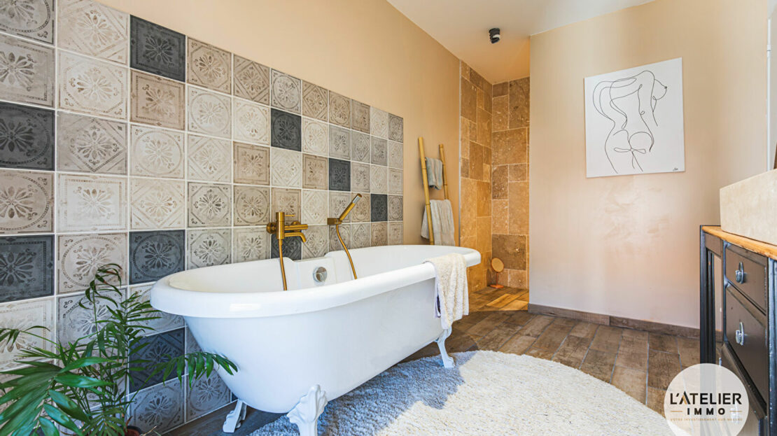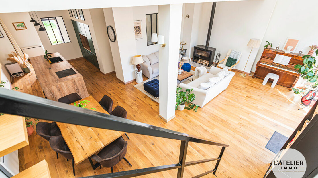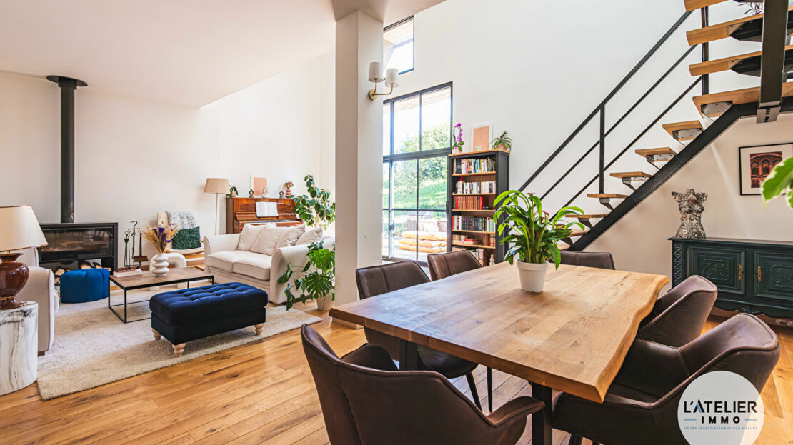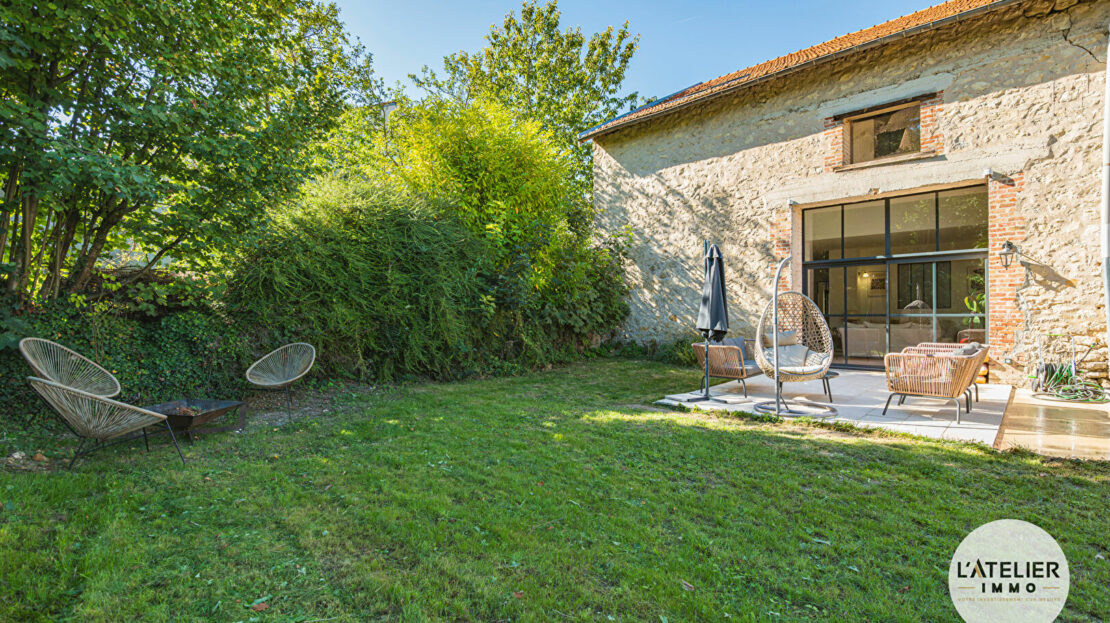 La première partie du bien est une grange entièrement rénovée d’environ 150 m² habitables, mariant le cachet de l’ancien et le confort moderne. Elle offre une pièce de vie lumineuse ouverte sur le jardin, une cuisine moderne entièrement équipée et fonctionnelle. Vous y trouverez trois chambres spacieuses, un espace bureau idéal pour le télétravail, une salle de bain équipée d’une baignoire et d’une douche, une lingerie indépendante ainsi qu’un dressing.