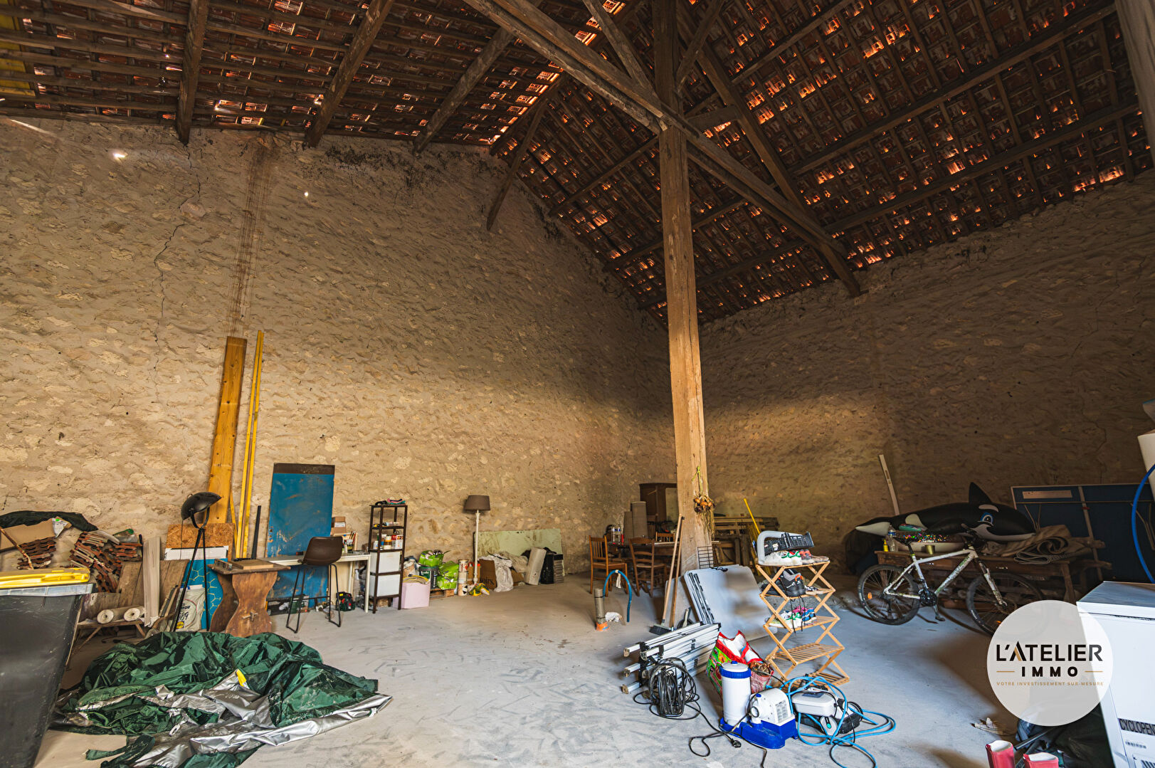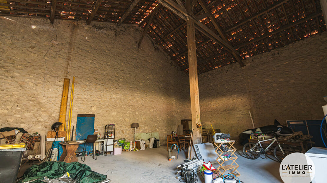En complément, l’ensemble comprend une seconde grange brute à rénover, offrant environ 138 m² au sol et une impressionnante hauteur de 9,5 m au faîtage. Ce volume exceptionnel ouvre un large éventail de possibilités : création d’un second logement, aménagement de gîtes, espace professionnel, atelier d’artiste ou encore lieu de réception.