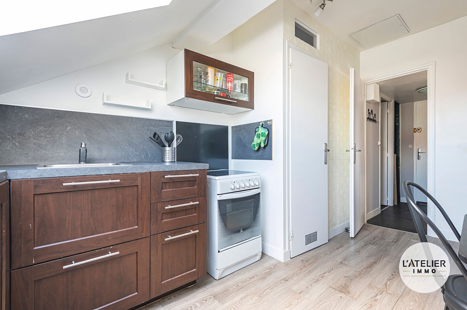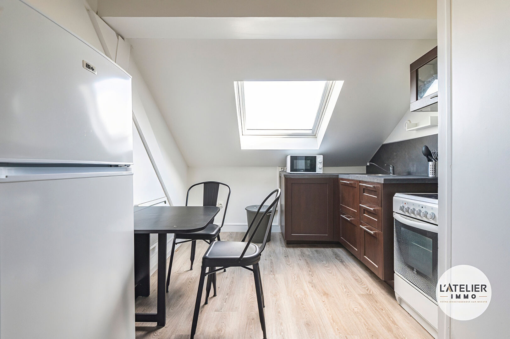 Situé au dernier étage d’un immeuble de cinq logements, cet appartement unique sous combles, offre un cache authentique et une atmosphère chaleureuse. D’une superficie au sol d’environ 45 m², il se compose d’une entrée avec placard, d’une cuisine, d’un séjour, d’une chambre, ainsi qu’une salle de bain et des toilettes séparées.