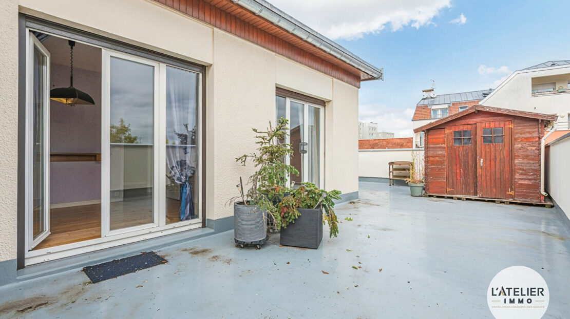L’Atelier Immo vous présente en Exclusivité cet appartement de type 5 avec superbe terrasse de 140m² et garage, proche centre de Reims.
