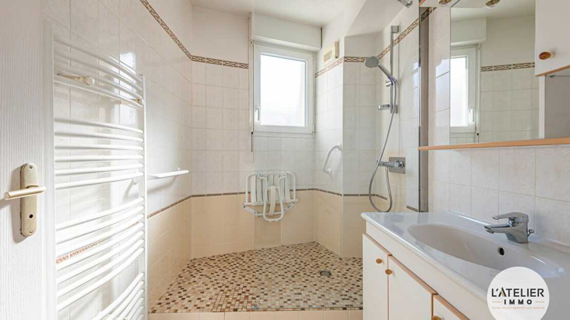 Une salle de bains, des WC séparés et plusieurs rangements viennent optimiser l’agencement de ce bien.